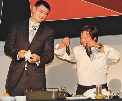 姚明籌募善款學做烤鴨 名廚妙語連珠逗笑全場(圖)