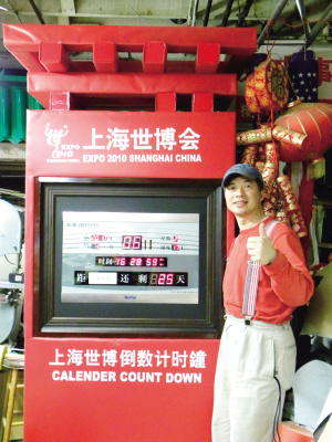 舊金山灣區上海世博宣傳組委會主任黃漢龍制作了上海世博會倒計時鐘,將于本周六揭幕。(美國僑報)