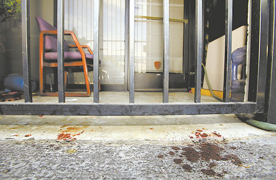 命案現場Ultima DVD公司門外地上血跡斑斑。 美聯社