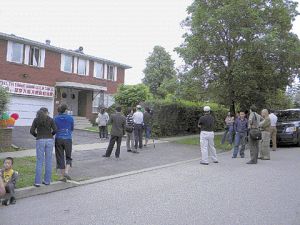唐煒臻的燒烤會13日下午2時許,如期在其家中的后院舉行,唐在家門前對媒體做了一番有關自己的案件是“冤假錯案”的表白。他家的車房門上方,依舊高懸寫有中英文口號的橫額“唐煒臻一案,加拿大最大的冤假錯案”。