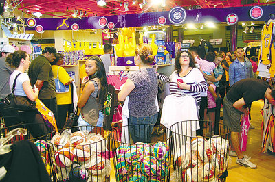 西裔諾加勒斯一家祖孫三代到湖人隊用品店選購各自中意的服裝、鞋帽。他表示,一直是湖人隊忠實球迷,經常購買湖人隊紀念品,所有紀念品加起來可辦一個收藏展。