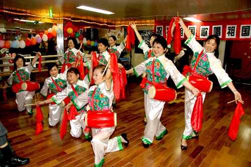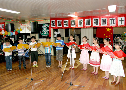 當(dāng)天的聯(lián)歡會(huì)上,婦女會(huì)的姐妹們表演了新創(chuàng)作排練的腰鼓舞蹈,育才學(xué)園小朋友們表演了集體詩朗誦,趙永平、惠青等朗誦了《祖國我愛你》長詩。在王燕文小姐領(lǐng)唱下,全體與會(huì)人員還起立演唱了歌唱祖國的大合唱。隨后,趙永平會(huì)長、孫總領(lǐng)事以及與共和國同齡的姐妹們一起切開了慶祝祖國六十周年的生日蛋糕。