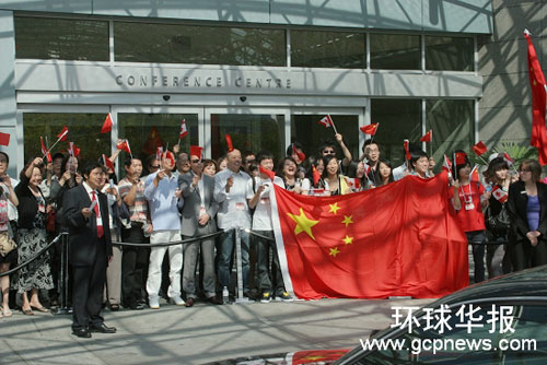 中新網9月1日電 據加拿大《環球華報》報道,中國全國人大常委會委員長吳邦國一行在出訪古巴、巴哈馬、美國途中,在溫哥華做短暫停留。當地時間8月31日上午,溫哥華幾百名華僑華人以及中國留學生在吳邦國一行下榻的酒店門前夾道歡迎。