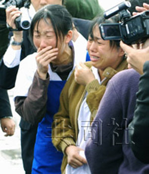 宋方的父親9日抵達森町認領女兒尸體。靈柩車途經宋方生前所在工廠時,同事們淚流滿面前來送行。
