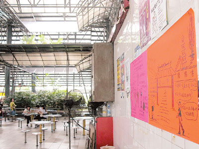 張貼在飲食中心周圍的有關(guān)漫畫大字報顏色非常鮮艷,內(nèi)容都是以“馬華武林大會”、“支持特大”、“翁大使要第一劍”、“中委會不支持特大”、及“雙龍出海,混云卷風(fēng),龍虎斗,必有一傷”,及勸人退一步海闊天空等字眼。