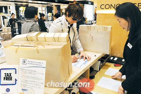 “這個(gè)肯定是真貨吧?”韓國首爾新世界百貨商店總店的外國人“退稅(tax refund)”柜臺前擠滿了中國人。一位顧客拿著一塊閃閃發(fā)光的名牌手表給百貨商店的漢語翻譯看并詢問。