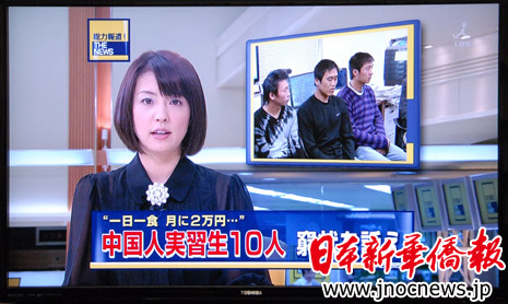 中新網1月8日電 據日本新華僑報網報道,在中日兩國引起強烈反響的十名在日中國實習生“討薪事件”也引起了日本媒體的關注。1月7日,日本主流媒體TBS電視臺兵分三路,一路前往十名中國實習生的駐在地采訪,一路找到中國實習生所在的“健陽”株式會社社長宮地聰采訪,一路找到在《日本新華僑報》社舉行記者會見的十名中國實習生采訪。當天晚上7點半鐘,TBS電視臺在黃金時間段播出這條新聞,引起很大反響。