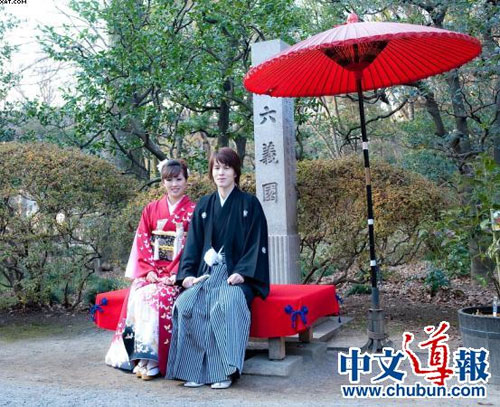 2010年2月7日,記者在日本舊古河庭院見到了這一對幸福的夫妻。他們已經穿上婚紗和禮服,準備拍攝婚紗照了。