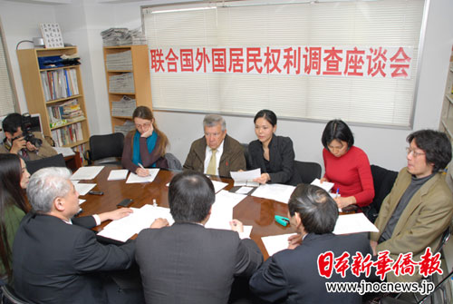中新網4月2日電 據日本新華僑報網報道,3月27日上午11點半,聯合國人權理事會特別調查專員霍爾赫•布斯塔曼專程到《日本新華僑報》社,與日本東京中華街促進會代表胡逸飛、中日志愿者協會會長張劍波、《日本新華僑報》總編輯蔣豐以及同源中文學校代表等圍繞著在日外國人生存權利的問題舉行了座談。其后,布斯塔曼專員前往池袋車站北口,視察了屢遭日本右翼組織騷擾的華人物產店“陽光城”。