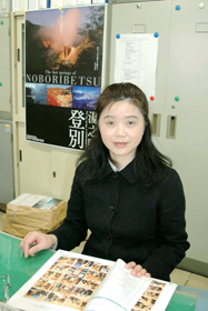 在登別觀光室的黃劍群女士。(日本新華僑報網圖片)