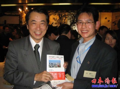日本湖南人會會長段躍中回憶了向菅直人贈送中國人日語作文大賽獲獎作品集《對日中友好的建議》及幾次和菅直人交流的故事。段躍中指出,這次菅直人當選新的日本首相,對中日關系會起到良好的促進作用,期待菅直人更加發揮中國留學生的作用,開創中日交流的新局面。