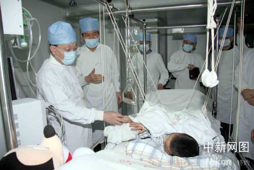 “還痛嗎?”在重癥監護室,馬儒沛主任拉著岳強的小手,輕聲詢問。“還有點痛,謝謝叔叔、伯伯們。”小男孩很真切地回答,看上去心情倒放松。