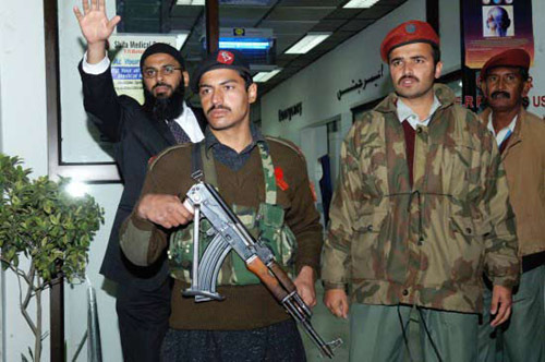 24日,在巴基斯坦首都伊斯蘭堡,軍警在收治受傷中國工程人員的醫院急診室外把守。新華網 李敬臣 攝