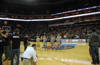 當地的媒體以“中國文化之夜Chinese Culture Night”為主題命名了這個夜晚的賽事。夏洛特山貓隊總裁——著名球星邁克爾·喬丹也在現場,當他看完中國功夫的表演后,興奮地對費佛爾孔院Weihong Yan(閻偉紅)院長說:“在NBA的賽場看到中國的表演真是令人振奮!給我們增加了獨特的氣氛!”費佛爾孔院的中國文化表演為美國的NBA文化注入了一股清新的氣息,讓全場的美國民眾感受到了東方文化的獨有魅力。