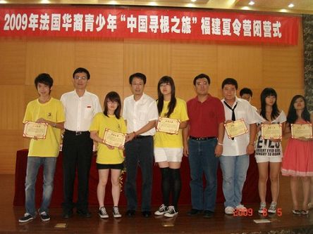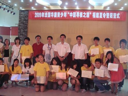 8月5日,2009年法國華裔青少年“中國尋根之旅”福建營在廈門集美大學閉營。閉營儀式上,法華裔青少年們在精心準備的匯報演出中盡顯才藝,將學習成果進行了精彩展示,還開心地領取到了結業證書。