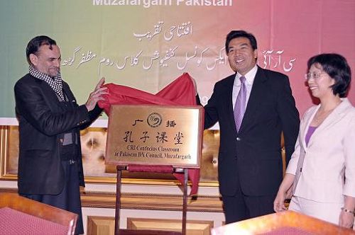由中國國際廣播電臺(tái)在巴基斯坦開設(shè)的首家廣播孔子課堂29日在巴首都伊斯蘭堡萬豪酒店舉行揭牌儀式。這家廣播孔子課堂是受中國國家漢辦委托,由中國國際廣播電臺(tái)與巴基斯坦穆扎法爾格爾市短波收聽俱樂部合作建立的。