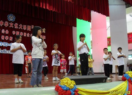 中新網4月6日電 據華僑大學網站消息,4月2日,由泰國華文教師公會、華僑大學華文學院共同主辦的泰國“中華文化大樂園”夏令營坤敬分營在坤敬府公立華僑學校禮堂舉行閉營式。