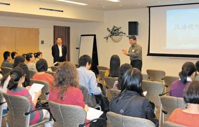 中新網4月16日電 據美國《世界日報》報道,美國韋伯斯特大學孔子學院日前在該校愛莫森圖書館會議室舉辦第二屆漢語教師研修班。近50位圣路易地區漢語教師及漢語教學熱心人士參加培訓會議。