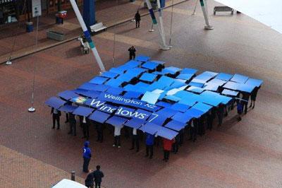在新西蘭的奧克蘭和惠靈頓,微軟已經(jīng)啟動(dòng)了Windows 7發(fā)布儀式,許多工作人員聚集在廣場上,以拼圖形式組成了巨大的Windows 7標(biāo)識。