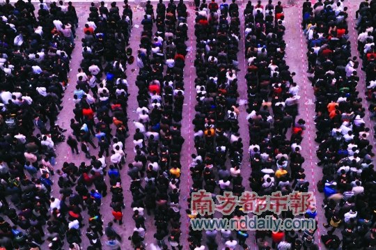 誰說今年企業招工難?過去一個多月,龍華富士康門口日日數千人求職,密度可比春運火車站,進人群易出人群難,站著睡覺不會倒,上個廁所得憋著。昨日凌晨5時左右,由于保安未上班無人看管,求職者更是擠倒欄桿,人仰馬翻,互相踩踏,幸無人員傷亡。
