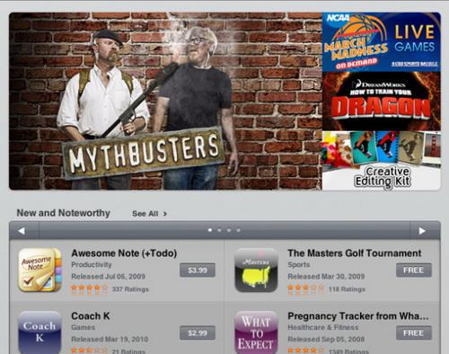 有趣的是這個主頁顯示了許多應用程序的列表,其中許多應用程序是游戲。這個主頁看起來很像iPad版本的蘋果應用程序商店和iTunes商店。蘋果首席執行官史蒂夫·喬布斯在今年1月在發布iPad的儀式上展示iPad的時候曾介紹過iPad應用程序商店。