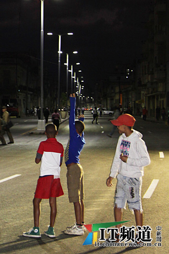 路燈點亮了,圍觀的人群歡呼起來,在現場圍觀的哈瓦那市民魯爾興奮地告訴記者,他就住在中央大道附近,這是他看到的最漂亮的也是最亮的一條馬路,真想不到他自己會成為享受中國高科技節能產品的第一批幸運兒,因為他自己的家就在馬路邊上,他天天晚上都可以享受這份樂趣。