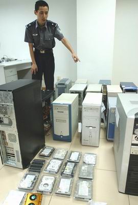 警方查獲淫穢色情網站的部分電腦主機和硬盤(圖片來源:新華社)