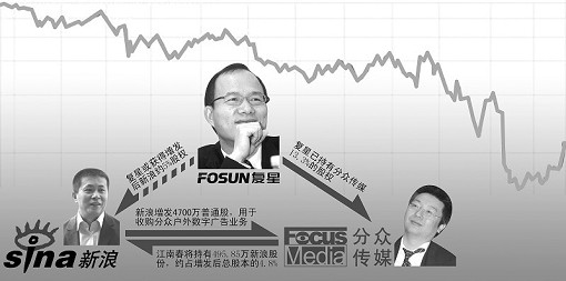 呂伯望給記者粗算了一下,復星國際在分眾傳媒中13.33%的股權,如果換到增發后的新浪,也就能拿到5%左右的股權,而在此前,連掌握了新浪18%股權的盛大CEO陳天橋都沒能進入新浪董事會。