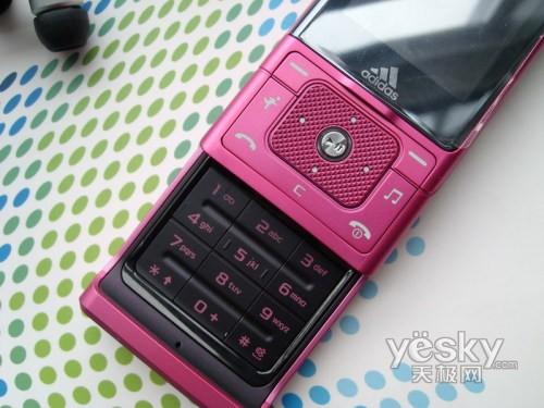 外觀上,F110配備了一塊2英寸的26萬色TFT彩屏,分辨率為240×320像素,屏幕上方是三星的LOGO,屏幕下方則是阿迪達斯的LOGO。其內置界面則是三星一貫的12宮格界面,不過加入了多款運動墻紙,非常符合其運動機型的特質。三星F110采用三星擅長的滑蓋設計,正面采用鏡面設計,并且加入特殊涂層,無論在視覺或手感上都是非常的動感,非常符合運動的特質。背面的防滑設計相當的出彩,非常有利于在運動中使用。另外整機101.5×45×14.5mm的三圍加上92克左右的重量也非常便于攜帶。