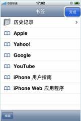 ⑵首次打開Safari瀏覽器時,系統會彈出書簽菜單,如不想訪問蘋果推薦訪問的網站,可直接點擊右上角的“完成”按鈕進入空白頁面(如想查看推薦網站,直接單擊相應的書簽即可)