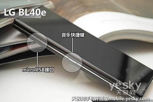 LG BL40e機身四周采用無縫式設計,機身做工精細,各部分銜接緊密。機身頂端分別設計了3.5mm耳機接口與電源開關/屏幕鎖,點擊一次電源開關,即可鎖閉屏幕。