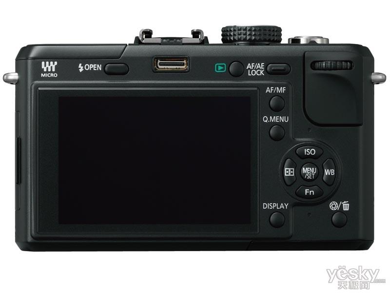 該機(jī)背后是一塊3英寸LCD,其顯示精度也要高于E-P1,約具有46萬(wàn)像素(E-P1的LCD為23萬(wàn)像素)。GF1的三圍尺寸和E-P1區(qū)別不大(119×36.3×71mm),但重量卻比E-P1輕了50g,只有285g。另外,GF1的電池型號(hào)是與G1及GH1相同的DMW-BLB13型。
