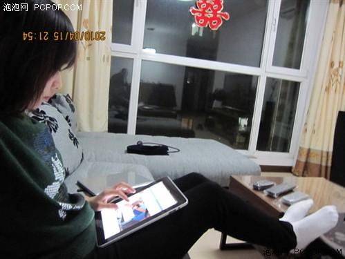 使用iPad時,視覺角度完全取決于自己的雙腿彎曲程度……EeePC屏幕轉軸最大是120度的開合度,可以隨意調節成適合自己的角度。
