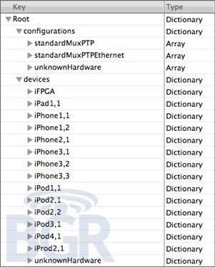 一份內部型號的文檔顯示,上一代的iPhone 3GS內部型號為“iPhone2.1”因此列表中其后的“iPhone3.1”、“iPhone3.2”、“iPhone3.3”就很有可能是最新一代iPhone手機的內部型號。一共有三款,其中之一已被確定為CDMA版本的iPhone。