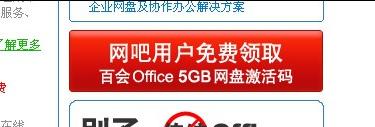 凡是網吧用戶,只要登錄百會首頁(),就可以看到免費領取百會Office 5G網盤激活碼的活動按鈕。