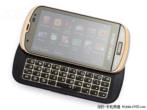 從外觀上來看三星B7620手機采用金色的鑲邊來包裝黑色的機身,屏幕方面它采用3.5英寸WVGA(480×800分辨率)AMOLED觸摸屏,顯示效果非常出眾。鍵盤設計也是配備了質感極強側滑30度傾角QWERTY全尺寸鍵盤。其以奢華質感的銅金色調與Armani設計的元素線條完美結合,配合WM智能系統充分體現出該機的深刻底蘊。