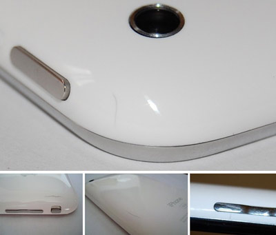 圖為:外殼出現龜裂的白色iPhone 3G
