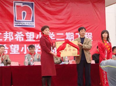 立邦(中國)有限公司再度讓一所希望小學注入彩色的夢想。2008年10月20日,立邦公司在山西捐建的一所希望小學二期彩色希望小學工程竣工。上午九點,在雄壯的國歌聲中,立邦太谷希望小學二期工程暨彩色希望小學落成儀式正式開始。立邦公司領導同太谷縣副縣長、太谷教育局局長及河東鄉書記、希望辦的領導一起,為其揭牌并參加當天舉行的立邦捐贈儀式,并參觀校園文化藝術節作品、觀看師生表演。