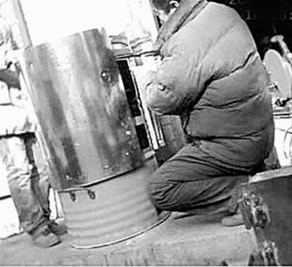昨天(12月24日),記者來到天橋區(qū)臧家屯小區(qū)附近,一條街旁有幾家加工鐵爐子的業(yè)戶,其中一家業(yè)戶前擺著一些大鐵桶,業(yè)戶在一個藍色的大鐵桶前忙活著。記者走近一看,業(yè)戶在加工地瓜烤爐,他給藍色的大鐵桶包上半米高的白色鐵皮。“你這里加工地瓜烤爐嗎?多少錢一個?”記者問!300多元一個。”業(yè)戶指著正在加工的大鐵桶說,“這個烤爐已經有人買了,你如果想要烤爐,先挑個鐵桶吧!