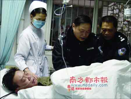 記者趕到廣東省第二中醫院,鄒本固仍處在昏迷中,正在急救室。輸氧、輸液,將近一個小時后,鄒本固終于睜開雙眼。