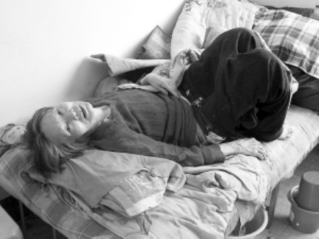 隨后記者走進敬老院的寢室,看到每個房間有四張床,其中一樓的一個房間門開著,在門外就能聞到一股刺鼻的臊臭味,房間內有位老太雙腿蜷起,正躺在床上呻吟,床底下還有一泡尿。老太說,她行動不便,喊了半天也沒人攙她去廁所,結果尿床了。此時,一位老人走了進來,將屋里的一個暖瓶拿走了,見老太尿床了,對她一番責罵。記者又走進另一間屋子,一位老人正拿著笤帚清掃。老人表示,沒人打掃內務,只能自己打掃,不然就得挨罵。