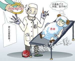 “下月起,醫院再對患者進行過度檢查屬于違法。”重慶合縱律師事務所徐桂鵬律師介紹,《侵權責任法》7月1日起正式施行,該法對過度檢查作了明確禁止性規定。