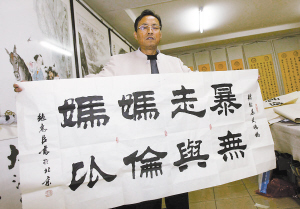 11月19日,本報在一版刊發了“北京書法家兩幅作品‘無與倫比’:一幅作國禮送奧委會主席羅格,一幅義拍救助武漢暴走媽媽”的消息。全國各地的書法網站、藝術網站紛紛轉載。
