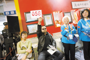 2008元的起拍價很快被1萬、3萬的喊聲淹沒下去。33號競買者仿佛志在必得,一下子喊出了5萬元的價格。可后排一位戴墨鏡的青年男子根本沒有松口,一下子跟到7萬。33號喊“8萬”,“墨鏡”喊8.8萬。嘩、嘩、嘩……無論是競買者還是觀眾,再次為他們的愛心鼓起掌來。