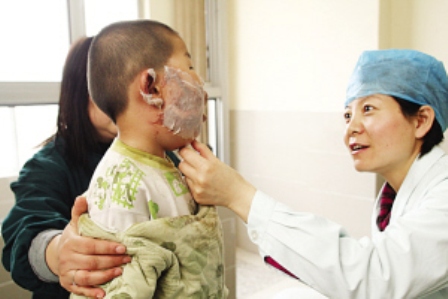 陽陽的主治醫師吳靜告訴記者,陽陽主要是面部和手部被燒傷,其中面部燒傷面積達到60%,基本都是深II度,部分達到深III度,燒傷情況比較嚴重,即使完全康復,以后面部也將留下疤痕。(秋實 張凌飛)