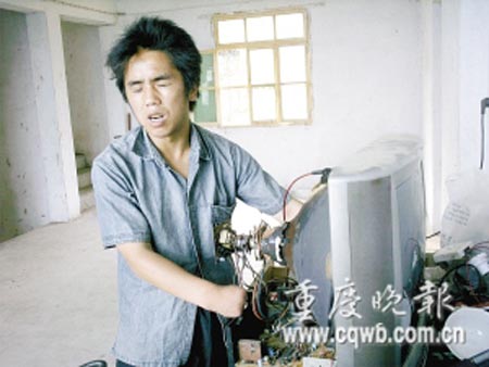 “我夜里不用開燈,耳朵又比父母好,因此他們很難發(fā)現(xiàn)。”袁樹清說,開始,他就摸電視的外形、開關(guān)以及聽電流聲。記熟后,他便用起子打開后蓋再摸,接著又嘗試拔一根根線:比如拔出一根線后電視沒聲音,他便記住這根線是管聲音的……就這樣,袁樹清用了半年時間,將電視機里的各個零部件形狀、所屬功能以及是否發(fā)聲、發(fā)哪種聲等熟記于心。
