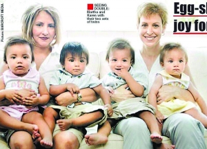直到2006年,瑪莎才終于利用捐獻精子孕育出了4枚胚胎。這一次瑪莎決定,將4枚胚胎分別植入自己和凱倫的子宮內,從而增加懷孕的幾率。隨后,瑪莎和凱倫的子宮內各自植入了2枚胚胎,令人沒有想到的是,這一次她們竟然雙雙成功懷上身孕!