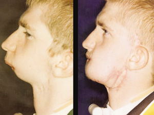 醫生們去年11月將多爾蒂背部的“下頜骨”取出,連同包裹在上面的軟組織等一道移植到他的面部。醫生們用了16小時,將這塊骨頭周圍軟組織內的微細血管與多爾蒂面部血管連接,以恢復這些軟組織的血液循環,隨后將這塊骨頭裝到多爾蒂的頭骨之上,為多爾蒂的新下巴做好了“框架”。