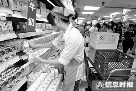 昨日上午,記者先后走訪了好又多超市南洲店、百佳超市曉港店以及家樂福超市萬國廣場店,發現伊利、蒙牛、光明、雀巢等品牌的國產液態奶陸續返市,但原先熱賣的1L家庭裝液態奶產品卻因“銷量上不去,不敢訂貨”而變得稀有,液態奶品種還不足正常時期的一半數量。