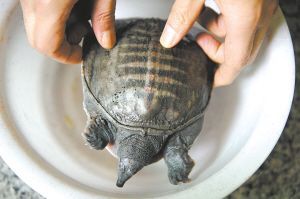 黃永昭介紹,辨別甲魚是否屬于野生的主要方法是看磨損程度。溫室甲魚生長迅速,一般不會有磨損痕跡。野生甲魚生存條件惡劣,腹部和爪子一般都有磨損,這很難偽裝。 (劉邦云)